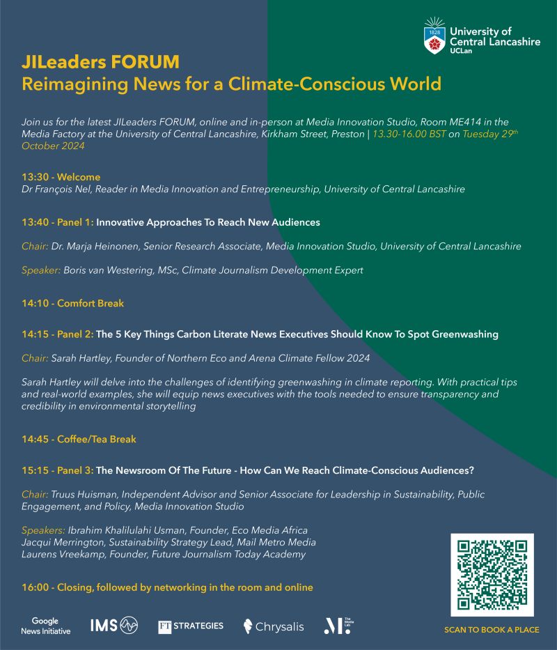 The latest Forum for the Journalism Innovation and Leadership (JI Leaders) programme at UCLan took place yesterday and delved into the thorny issue of how the news media considers the climate crisis.