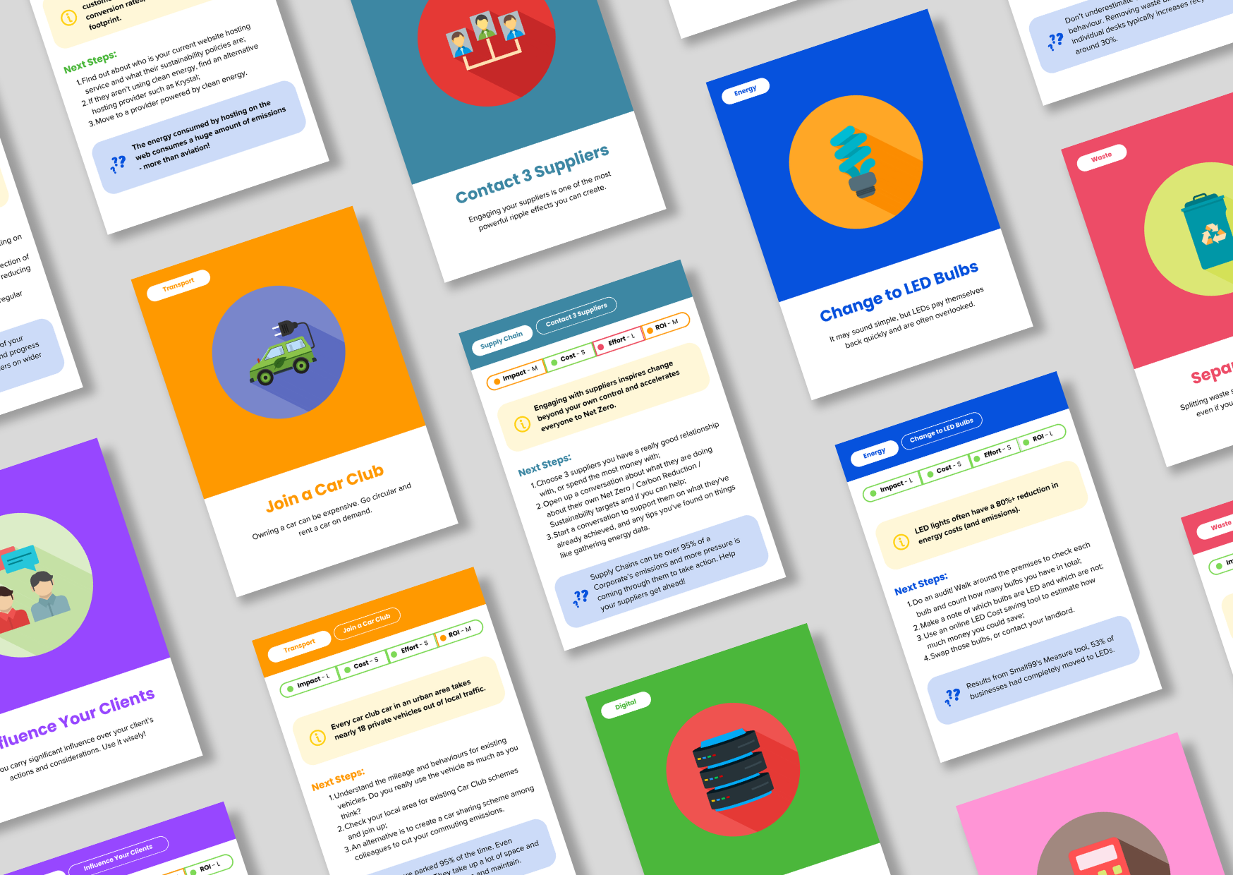 The perfect introduction for anyone new to carbon reduction. We’ll help with an action-orientated workshop that gives you or your business all the tools you need to get started on your carbon reduction journey.You’ll gain an idea of your footprint, understand the emissions of everyday actions, and build a visual plan of your own. It has been designed to be a fun, fast, interactive workshop over less than two hours and is suitable for individuals or teams in a workplace. Delivered regularly online (see below) or can be booked for an in-person workshop at your business. A recommended first step on your journey. Find out more and book a session here.